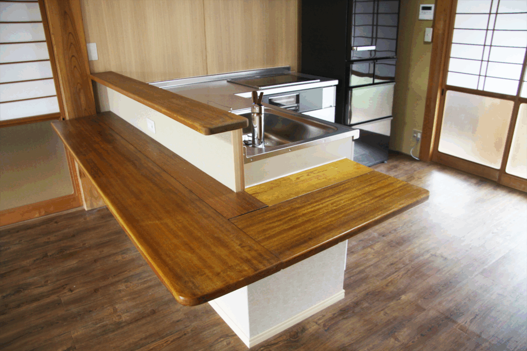 皆さまが自由に使えるリビング・ダイニングスペースは、木の板張りの床で温かみのある雰囲気です。大きなテーブルと椅子を備え、団らんや食事の場として活用いただけます。