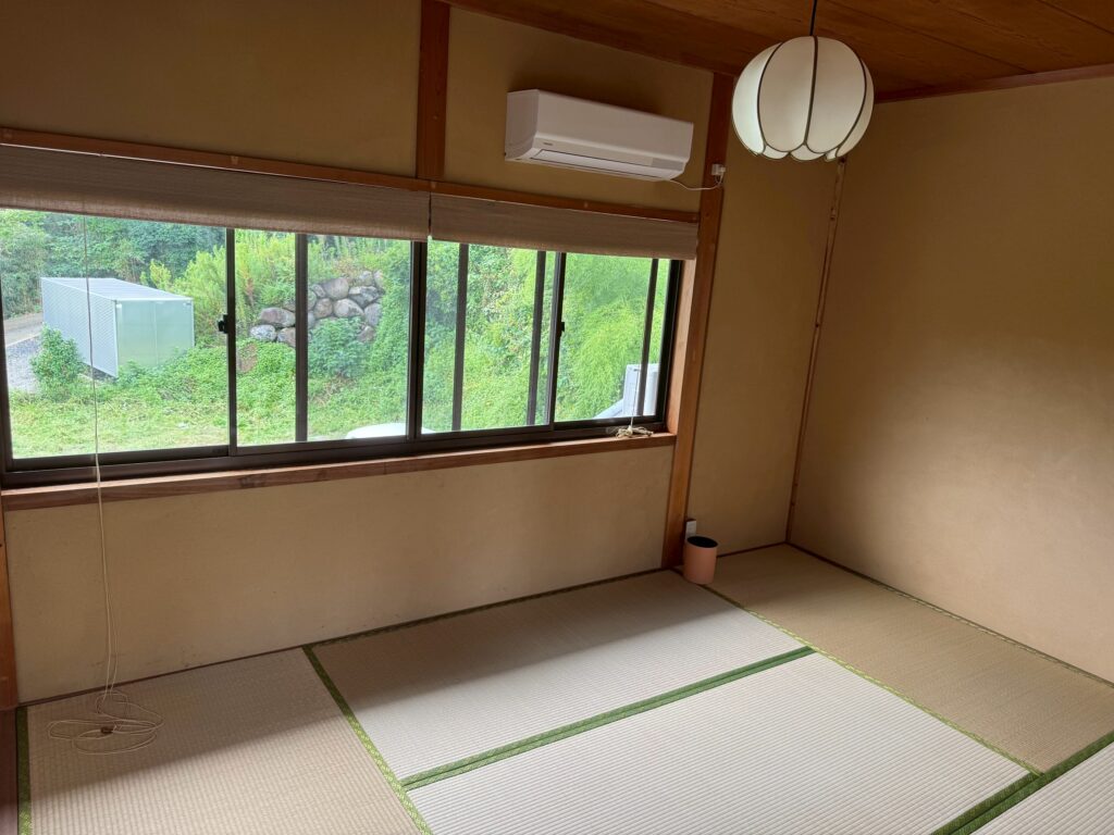 必要最小限ながら温もりを感じられる控えめな和室。窓際に目を向ければ、四季折々の木々の移ろいが目に入ります。1〜2名での短期滞在に最適な設えです。
