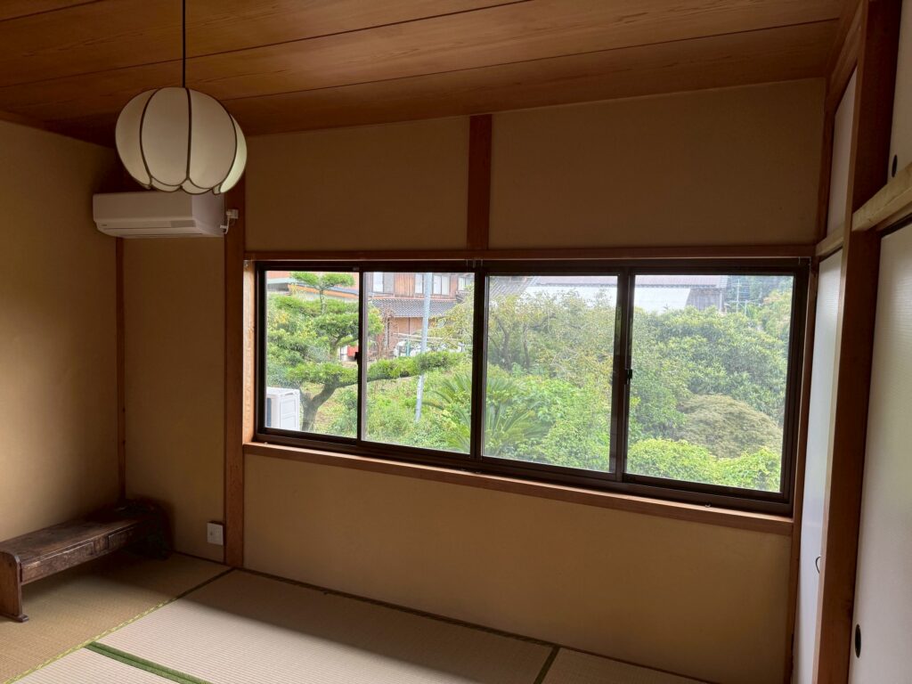 グループやご家族での滞在を想定した広々とした続き間。夜は布団を敷いてゆったりとお休みいただけます。窓からの景色が空間の開放感を高めます。